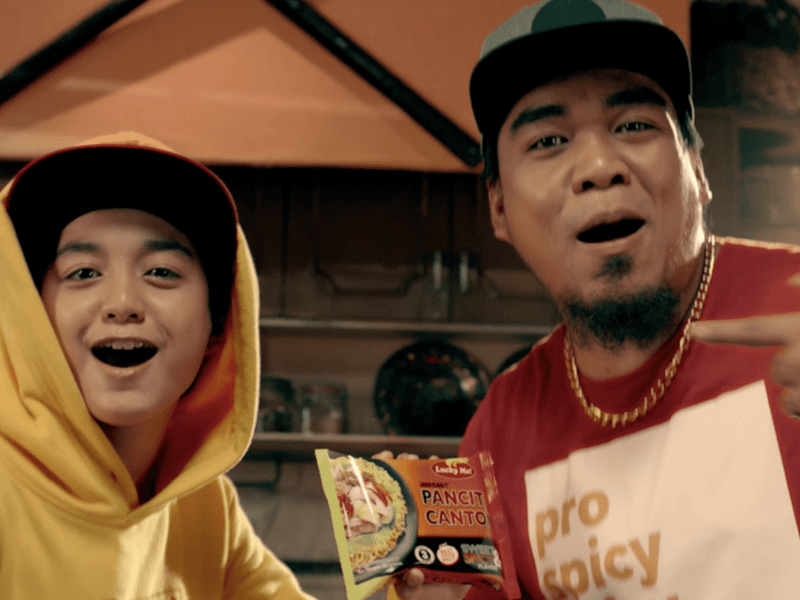 To highlight the contrasting flavors of Lucky Me! Sweet and Spicy Pancit Canton (stir-fried noodles), we set up the ultimate war of words between father and son.